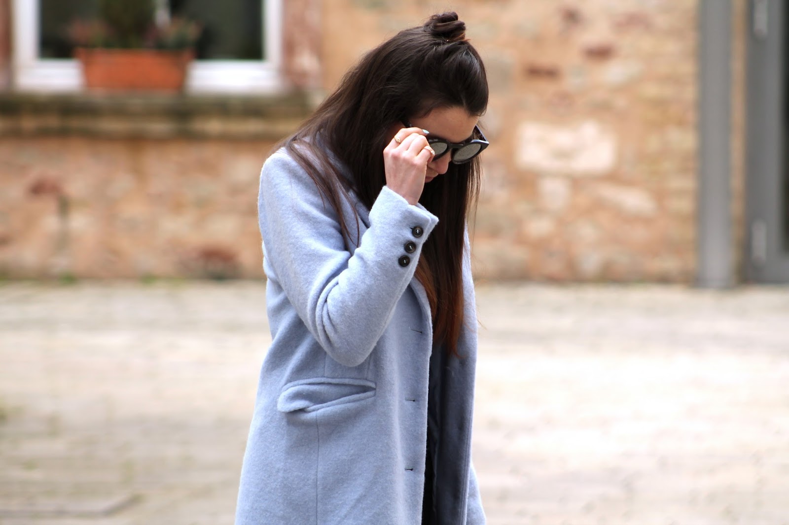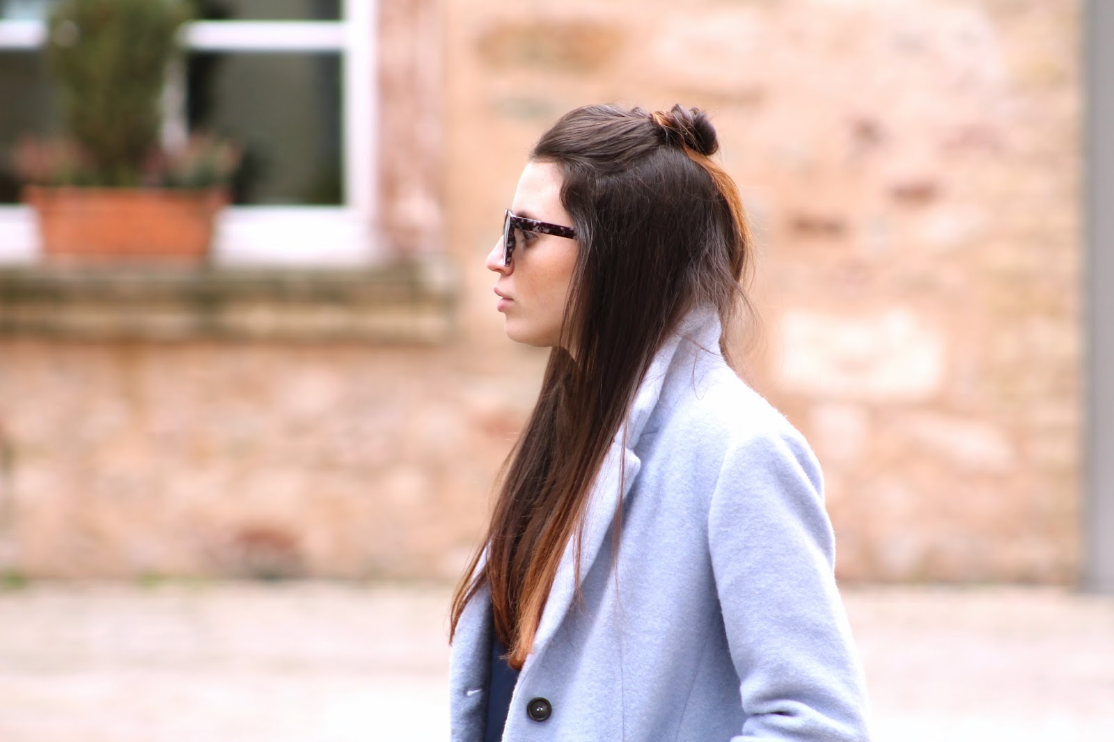 I bought this coat 2 months ago on Kleiderkreisel (a german online flea market) because I have the same coat in baby pink and I wanted it in another colour. Thankfully I found this secondhand for only 20 Euro. I really love the cut, the fabric and especially the colour. I combined it with my new (and currently lost) sunglasses, which have a perfect shape in my opinion.