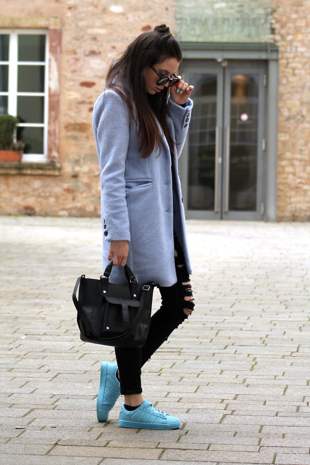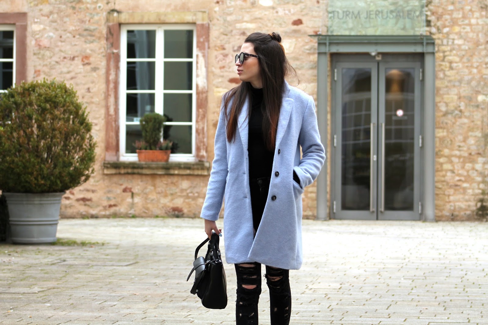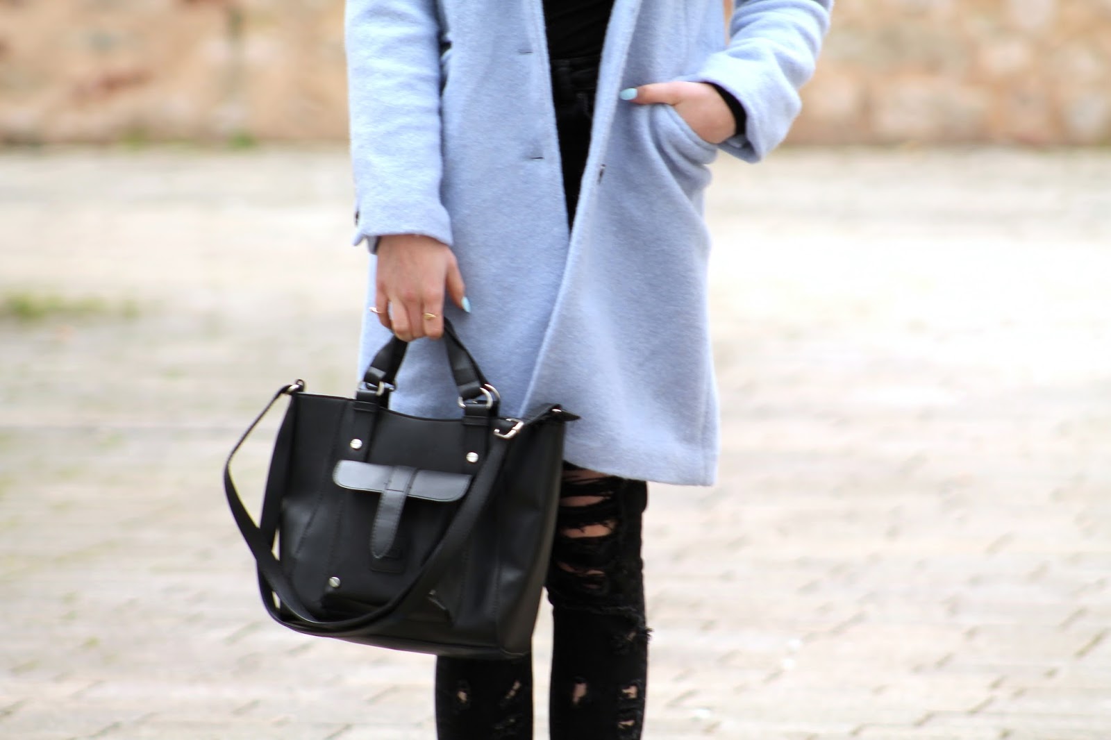 Today is all about this baby blue black combo. Black is always my go to colour, I simply love it because it works with everything but right now baby blue is my ultimate crush (besides of baby pink of course :) ) Besides I think this pastel blue colour is flattering for brunettes like me and is a perfect spring colour. I am also thinking of creating a blog article series all about pastell colours, what do you think?